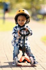 • Etapa 1. De la 12 luni: scaunelul reglabil pe inaltime ii permite micutului sa descopere lumea din jurul lui si ii ofera momente de distractie. Rularea pe trotineta cu scaunel ii dezvolta abilitatile motorii precoce. Poate fi folosita si in casa pentru ca rotile din silicon sunt silentioase si nu lasa urme pe parchet sau gresie.