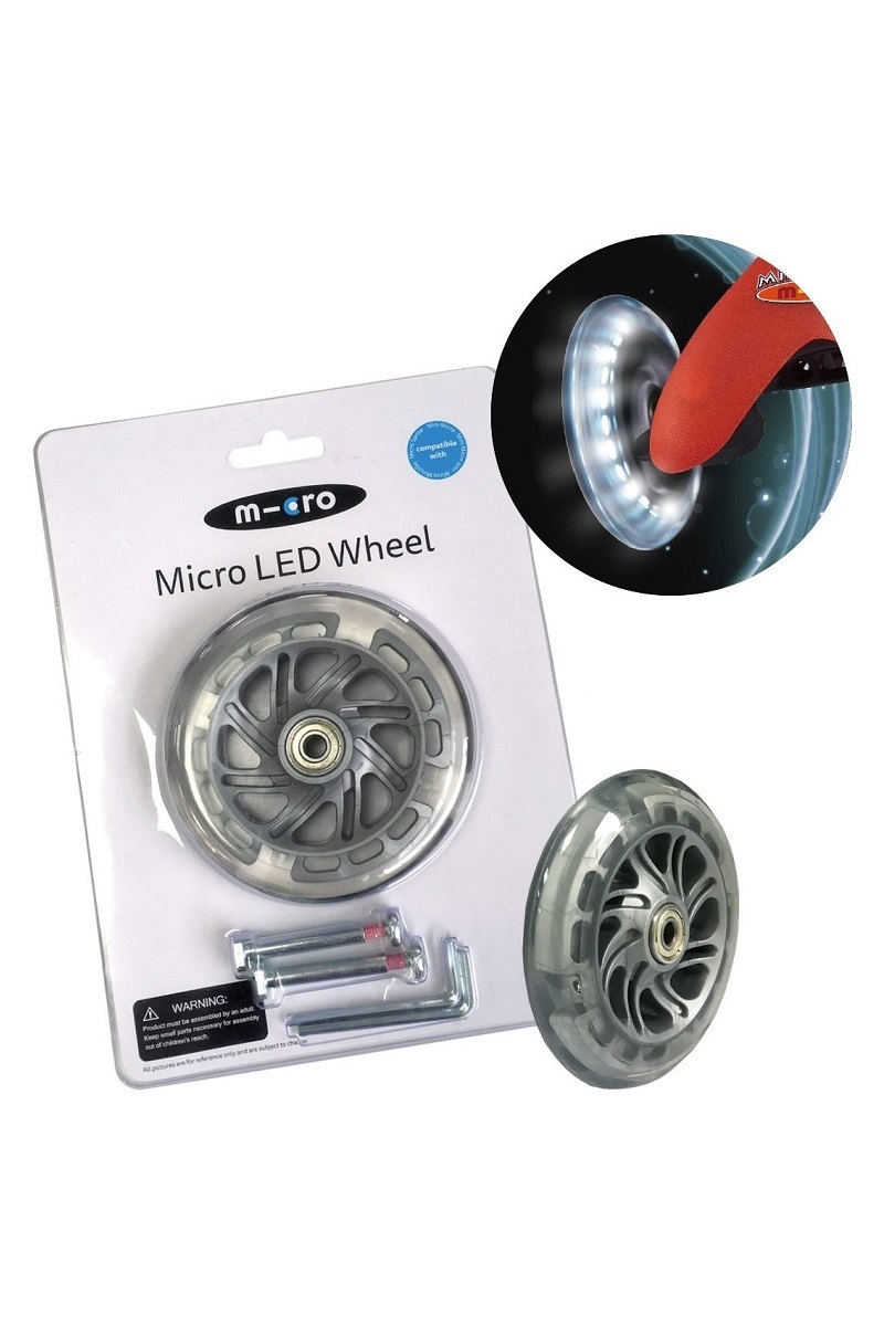 Setul este compus din cele 2 roti din fata pentru toate modelele de trotinete Mini Micro Classic, Mini Micro Deluxe, Mini Micro Deluxe Pliabil, Mini Micro 3in1 Classic, Mini Micro 3in1 Deluxe si Mini2go. Rulmentii sunt inclusi. Diametrul rotilor este de 120mm. In set este inclus si cate un ax nou pentru fiecare roata.